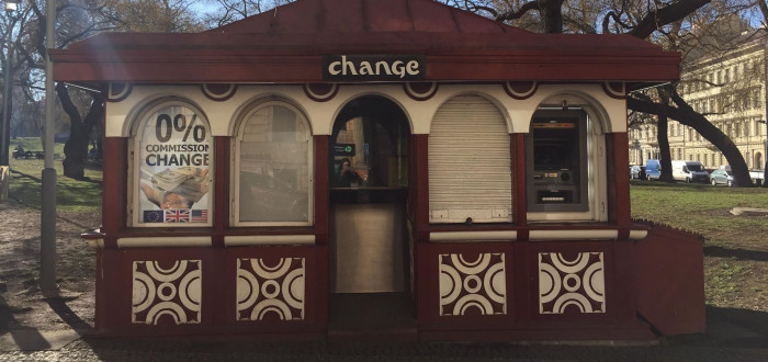 Světově zcela unikátní stavba rondokubistické trafiky je doslova znásilněna novým pronajímatelem. Nepořídíte si zde ani denní tisk a už vůbec ne tábak. Pokud však chcete býti okradeni špatným kurzem podvodné směnárny, tak tento architektonický skvost můžete ihned navštívit.